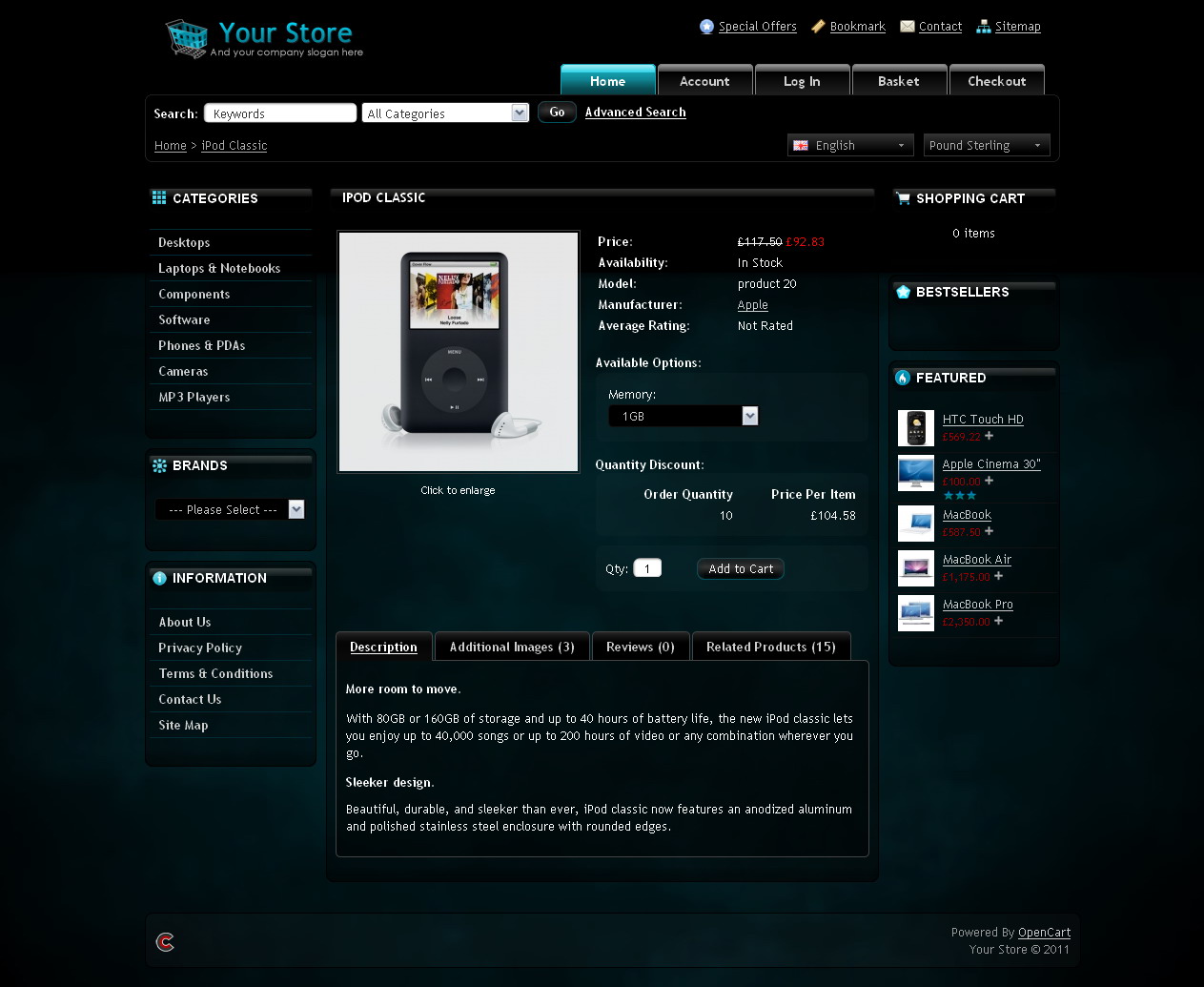 Theme demo: http://demos.cryoutcreations.eu/opencart/horrify-blue/